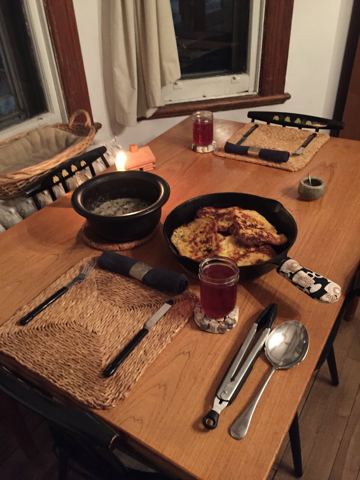 Most of our meals this have been pretty simple due to the many interruptions of puppy wrangling but one night I made Parmesan French Toast with Mushroom Fricassée. It was very yummy, especially for mushroom lovers. 😊
