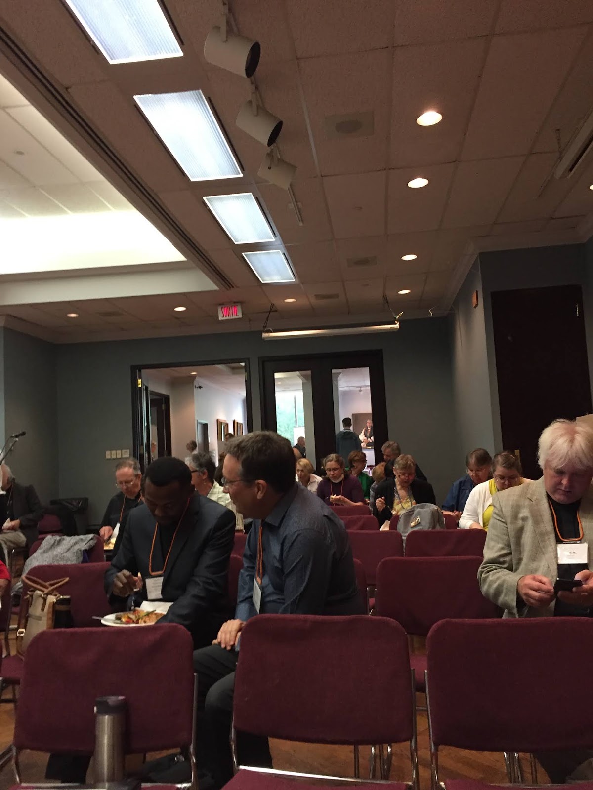 One week from now I’ll be sitting in a very different location, as it will be TEAM TRAINING DAY at my house and hopefully we will all be eating our lunch outside on the deck.Meanwhile here at Synod I’m grabbing my bag lunch as people all around me line up for the catered meal (non-organic 😒). I think I’ll need to break off now, as we are about to reconvene, more this evening when I finish this post…