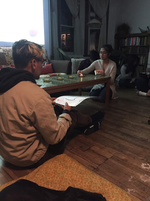 At present I’m running around setting out dishes, arranging chairs and prepping supplies for the Bible Study etc. My contribution to our supper is an Autumn Charcuterie Board but that can only be assembled at the last moment although, by mid-afternoon, I will need to start the hot apple cider since it takes quite a while to heat up in the slow-cooker. I bought 6 litres of cider and hope it will be enough for the hungry horde😊 A certain amount of time this week has been spent pulling together everything for this evening. Miriam and Donna sent me their choice of songs so I was able to get the PowerPoint completed and I then printed out copies of the Taizé Bible study. This morning while Steven was at home to watch Thomason I dashed down to the corner store to get a sheet of white Bristol Board as the small groups will be drawing on mini-Prayer Boards during their devotions time. All in all things seem to be coming together quite well and I’m expecting about 15 young adults, mostly recent Team Members as well as a few of the Committee members. Jillian is coming as she is the coordinator of next month’s Coffeehouse and so wants to hype it to the gang. I’m very pleased with the poster she designed and Henry did a great job printing it for us. We will be asking everyone to take copies to hang at their churches or schools.
