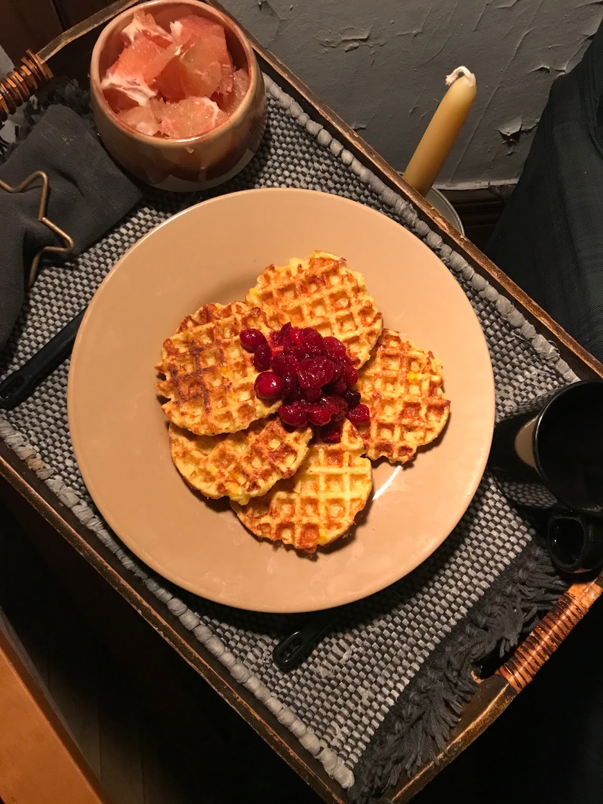 Over the past few weeks I have really been enjoying experimenting with the small waffle iron Mikaela gifted to me last winter. These cornbread waffles are super easy and versatile. Do give them a try!