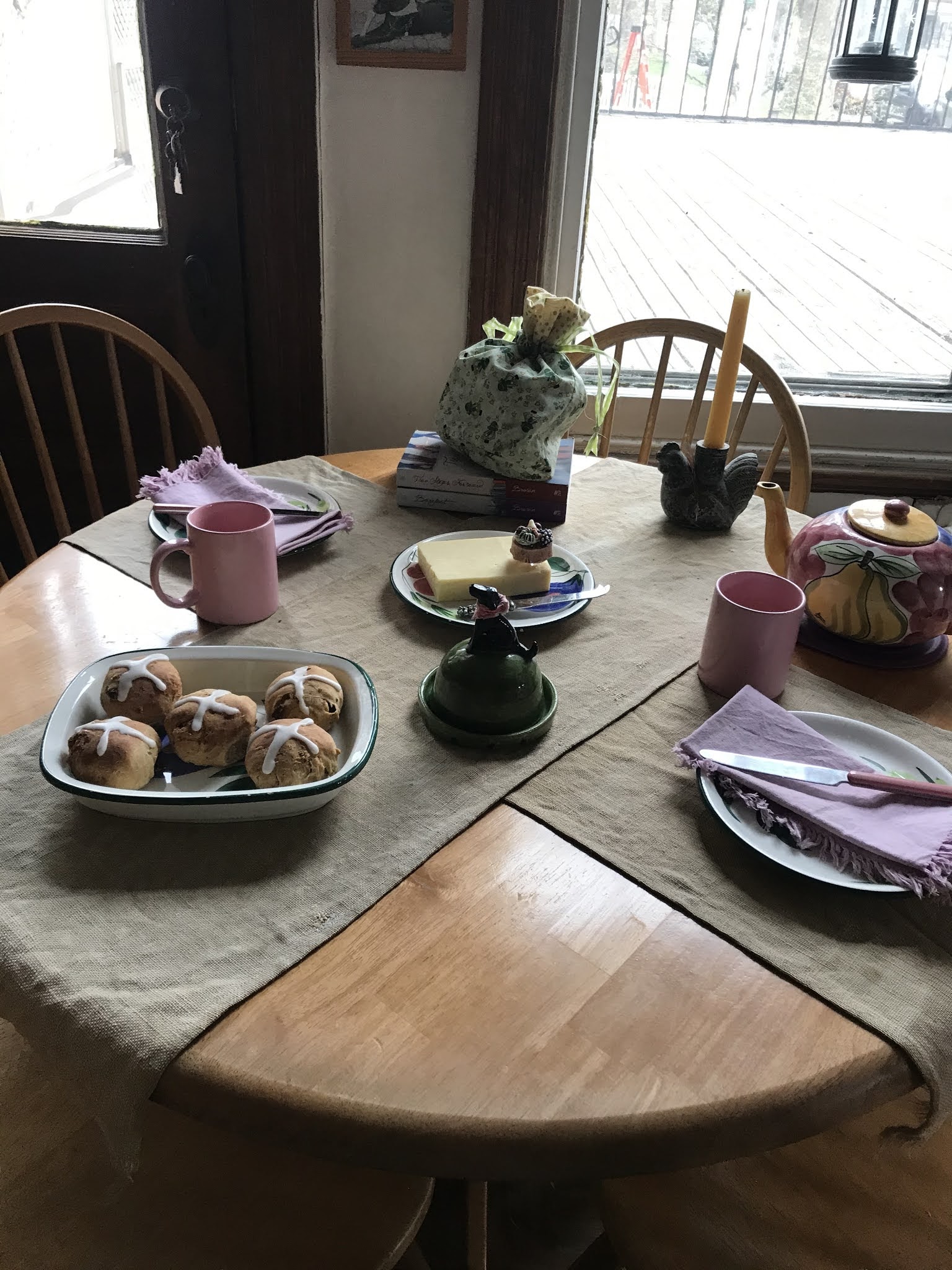Wednesday afternoon I had such a nice visit with Sarah. She and her husband, Alexander (both Team Alumni 😊) used to live just around the corner but moved to suburbia a year ago when their daughter was a year old. Another baby is on the way but Sarah (who is a nurse) is still working part time and so stopped by, on her way home from a shift, for tea and hot cross buns and to pick up Serena’s birthday gift 😊.