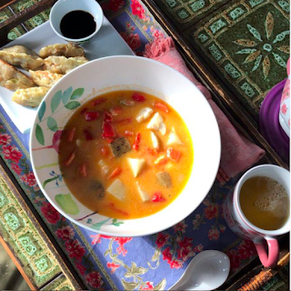 Last evening I made a really tasty Thai Fish Soup for dinner. I had it with homemade Vegan Potstickers but it would be equally good with a bowl of steamed rice or some egg noodles.