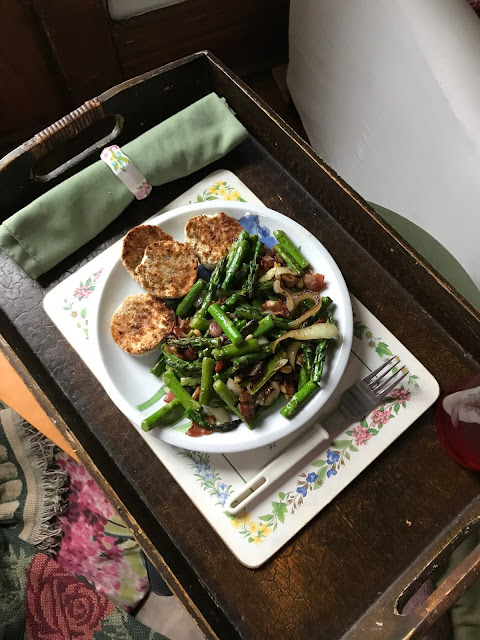 Of course in the days following the committee meeting there are always a bunch of tasks to take care of so the rest of my mornings have been pretty full although if the sun is shining I still head outside in the early morning to do garden work. At present I’m waging war against Day Lilies that have taken over in my largest flowerbed. They are very invasive, spreading via tubers, it wouldn’t be so bad if they produced nice flowers but they mostly only have leaves and the tubers wind themselves around other more delicate plants choking them to death. It would have been better to do this work a bit earlier in the spring but the ground was still frozen and digging out the tubers is hard work 😊 I’ve just about finished the clear out and now need to go back into the bed and fork up the earth adding some compost to help the other plants revive!