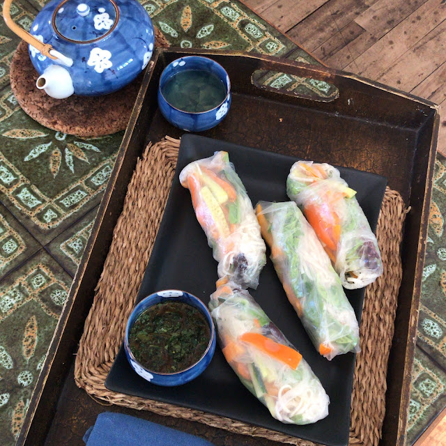 Combine the veganaise and curry powder and stir well. Spread the mixture evenly over each tortilla and place a lettuce leaf on top. Layer with the chicken and peppers and roll into a neat cone shape. Serve immediately, serves 2-3.