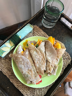 At Easter a very thoughtful friend gifted me with a box of organic groceries that included a whole frozen chicken. Since last Monday was the Victoria Day Holiday I celebrated by cooking it in my Slow Cooker, using this recipe It turned out perfectly and I packaged up enough cooked meat for several meals plus making a big pot of bone broth the next day. Using some of the chicken I made Curried Mango & Chicken Wraps for my dinner that night. Yum!