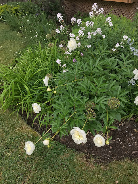 Outside of the small world of Day Camps (is there an outside?) I have continued to garden whenever I have a free hour.We had a couple of rainy days, which was actually great as everything was getting rather crispy but today there is only a chance of showers so first thing, after walking Thomason, I headed out to mow the lawns. The rest of the day will be mostly taken up with a baking marathon. I have a long list of things to pop in the oven- Granola, Rhubarb Crunch (the first of my own rhubarb!!!), GF bread for Sue, Tea Cakes, Digestive Biscuits and a Breakfast Custard. All of that should keep me busy for several hours Yesterday afternoon I did as much prep work on them as possible in the hopes that everything can get baked in a few hours today.
