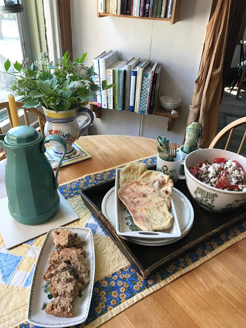 One afternoon this week I sewed a simple summer smock dress and this afternoon I hope to make a start on some baby rompers, which I cut out a few days ago. But first there is baking to do! Not too big a batch today, I’m just doing the bi-weekly GF loaves, a Miche for myself and some Angel Biscuits. So I guess we had better wrap this up.