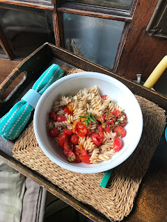 Thursday I picked up my second CSA share from the new farmers and got a lovely pint box of Cherry Tomatoes so I made a summery dish of: –