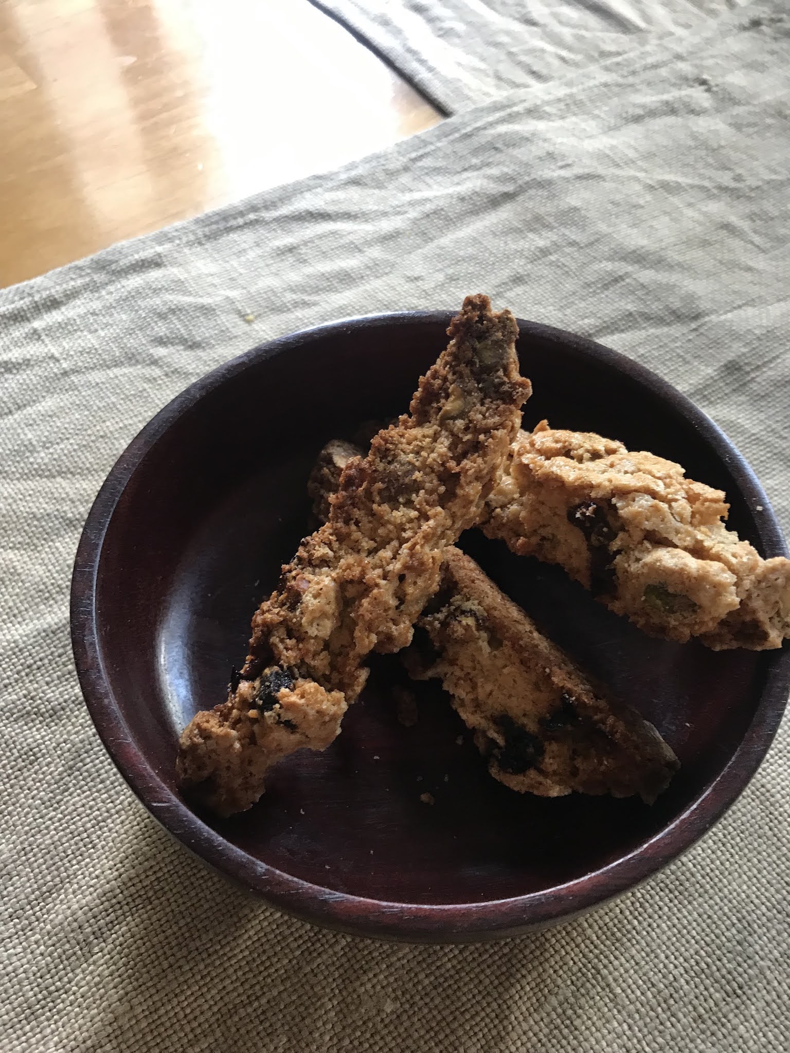 Bake in the preheated 350º oven for 25 minutes. Cool on racks then slice diagonally in ¼” thick slices. Return slices to the baking sheet and continue baking for a further 20 minutes or until lightly browned and crisp.