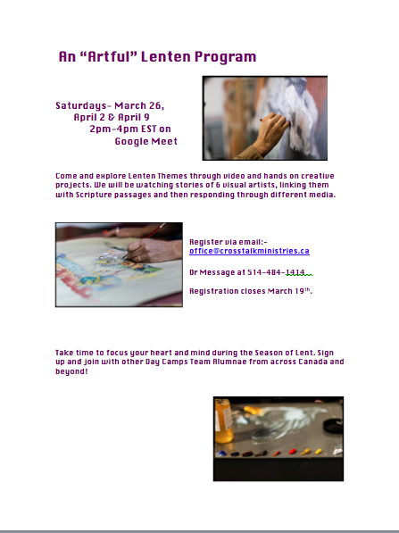 I have also moved forward in preparing for the Team Lenten study program and have chosen 3 good videos in the “Artful” series that will form the core content of the 3 sessions.