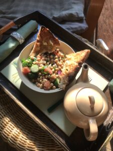 But first, it is time for our recipe. Last Monday was pretty hot and muggy so, when I was joined for supper, I made a very tasty Chickpea Salad, which was served with flatbread and a big bottle of iced Mint Tea.