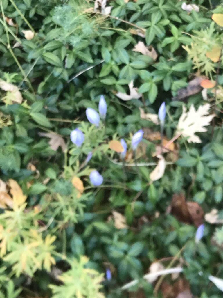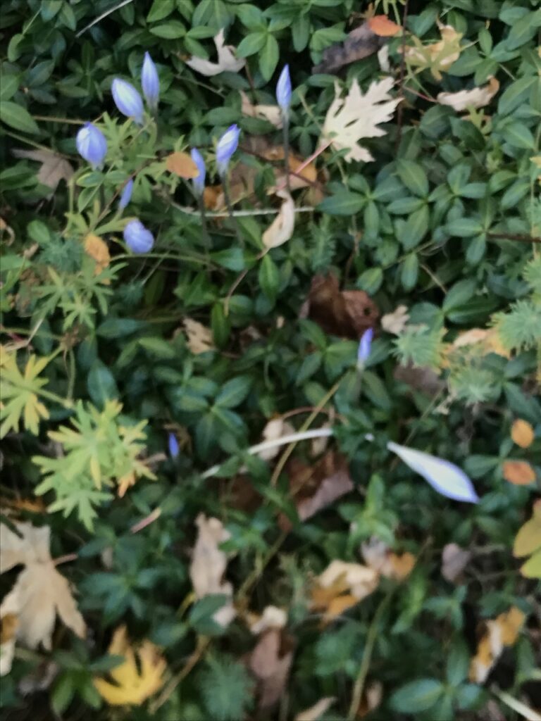 And so, today, I’m still cleaning up all the mess in the basement as well as trying to do a bit of raking, although everything is still pretty soggy after all the recent rain. Early in the week I was able to keep up with the leaves but have been defeated since Thursday. Before they were flattened by the deluge ,I was able to cap[ture the fleeting beauty of my Auumn Crccus see above).