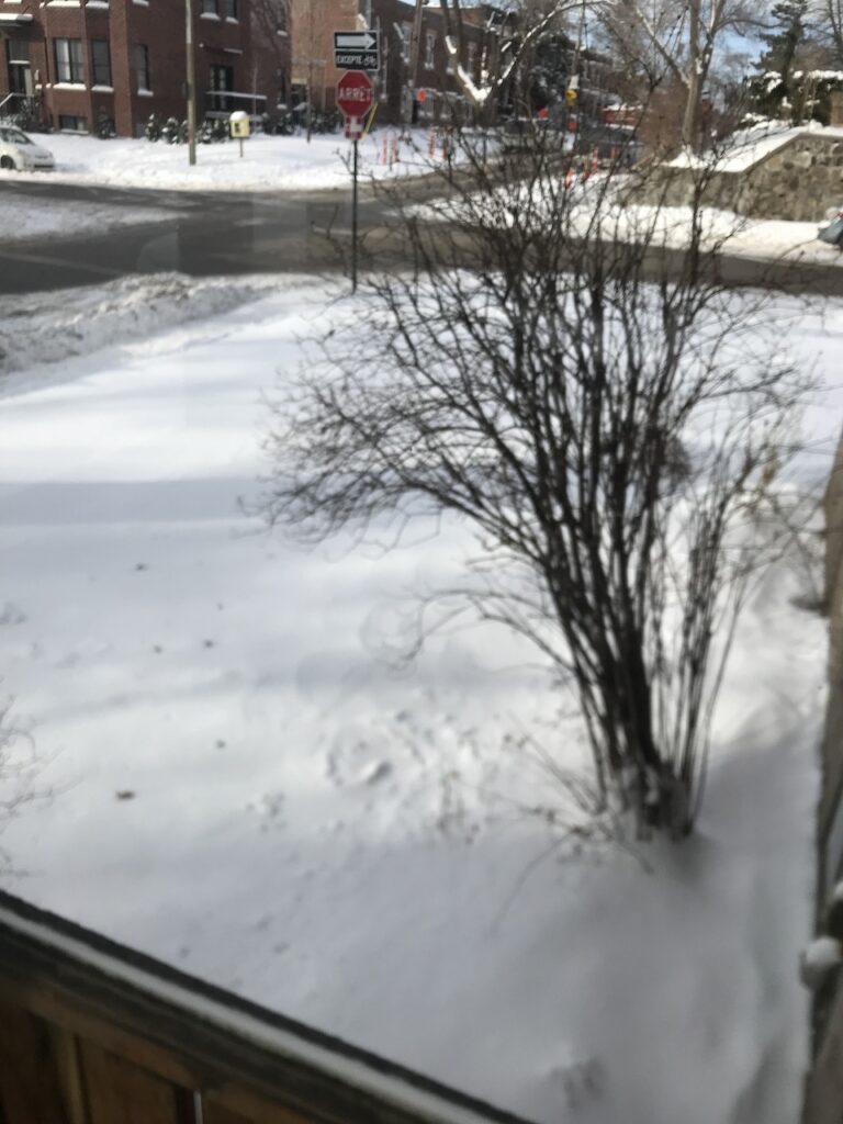 Over the past few days, we have had quite a lot of snow and I have had to log in many hours of shovelling. Thursday morning was particularly unpleasant as, the previous night, we had received 20cms of snow but, by that morning. it was combined with wind gusting to 60kms, making shovelling very hard going. By yesterday the winds had abated so I only had to spend an hour or so redoing some of the areas where drifts had piled up. It was still -20ºC so I worked as quickly as possible and, afterwards, made a cup of espresso to warm up!