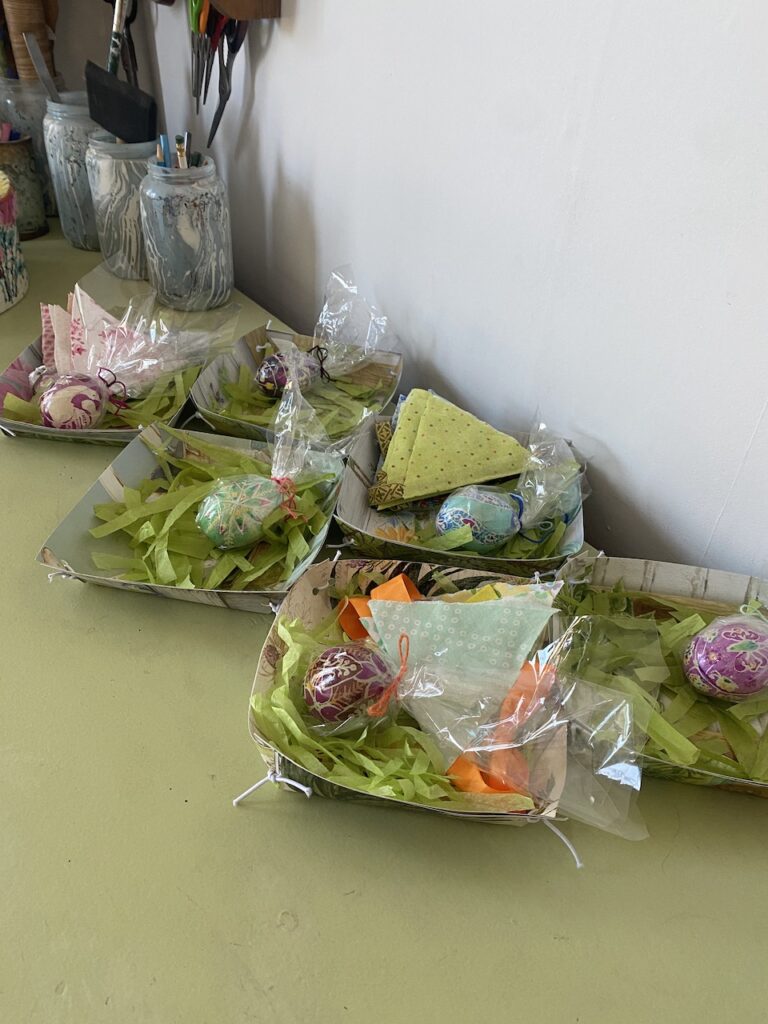 In my (ha ha) “spare” time I have managed to wrap all the completed Pysanky and also make a number of small bags in which to put some baked treats. Next weekend, it is hoped I can arrange to either deliver or have friends, pick up these small Easter gifts.